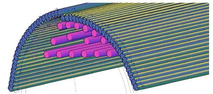 針對本工程下穿(深圳)地鐵3號線,暗挖隧道沉降控制高要求和現場地質、水文、環境的實際情況,拱部采用“雙排水平旋噴帷幕+(帷幕間)159mm超前大管棚”綜合施工工法進行超前與支護,掌子面上臺階施做“水平旋噴錨固樁”進行地質改良、錨固。本支護里程為DK110+500460,一次性支護長度40米,水平旋噴+管棚綜合支護;水平旋噴帷幕施工采用無線導向測控技術,測量精度為0.1%,施工精度為0.5%;內排旋噴樁在隧道開挖線外300mm孔,外環旋噴樁在開挖線外800mm布孔,一次施工長度40米,上仰1%角度預留施工誤差;設計水平旋噴樁樁徑600mm,環向孔間距400mm,環間距500mm,孔間搭接200mm,環間搭接100mm;掌子面施工水平旋噴試驗樁和錨固樁,施工長度和樁徑與拱部帷幕旋噴樁相同;暗挖隧道拱部水平旋噴樁咬合帷幕體中間施工超前大管棚,共同形成拱部超前支護;管棚在開挖線外550mm布孔,鋼管管徑 159mm,厚度6mm,采用內套管絲扣連接,連接扣長不小于70mm,一次施工長度為40米;超前大管棚采用有線導向測控,測量精度0.1%,施工精度為0.3。